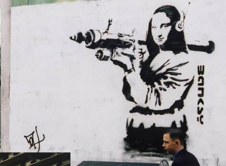 Pogledaj ovaj dokumentarac, radi se o svađi, tj. "grafiterskom ratu" između Banksya i još jednog londonskog umjetnika pod pseudonimom King Robbo.